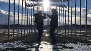 Artwork for the wetland at Rocky Ridge Recreation Facility consists of two rows of vertical posts topped with 102 wind vanes whose shape and color is loosely inspired by the Canadian Geese who inhabit the adjacent wetland. The southward pointing V formed by the posts is derived from the form that flocks take when ascending and in flight. The vanes are positioned on the poles so that the line formed by the lowest vanes points south to the position of the sun in the sky at noon on the Winter Solstice. The wind vanes are mirrored on one side and painted on the other, creating varied experiences from opposite sides of the artwork. Each wind vane rotates independently with the localized air current that is hitting it but as a flock they are always slowly migrating to point into the wind. As the sun changes its position in relation to the artwork and the wind causes small movements, the prismatic beaks glint with iridescence and the mirror finish of the wings glows. The appearance of the artwork is always changing, depending on a combination of where the sky is in the sky, which direction the wind is blowing, and which way the mirrored faces are pointing. Flock is a barometer of local conditions for those who observe it regularly.