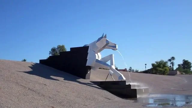 Haddad|Drugan collaborated closely with the city’s design/build team, including URS (engineers), J2 (landscape architects), Hunter Contracting (contractors), and representatives from the city and Scottsdale Public Art, to create Water Mark. CWDC Inc. built the horse gargoyle sculptures based on maquettes by Haddad|Drugan.